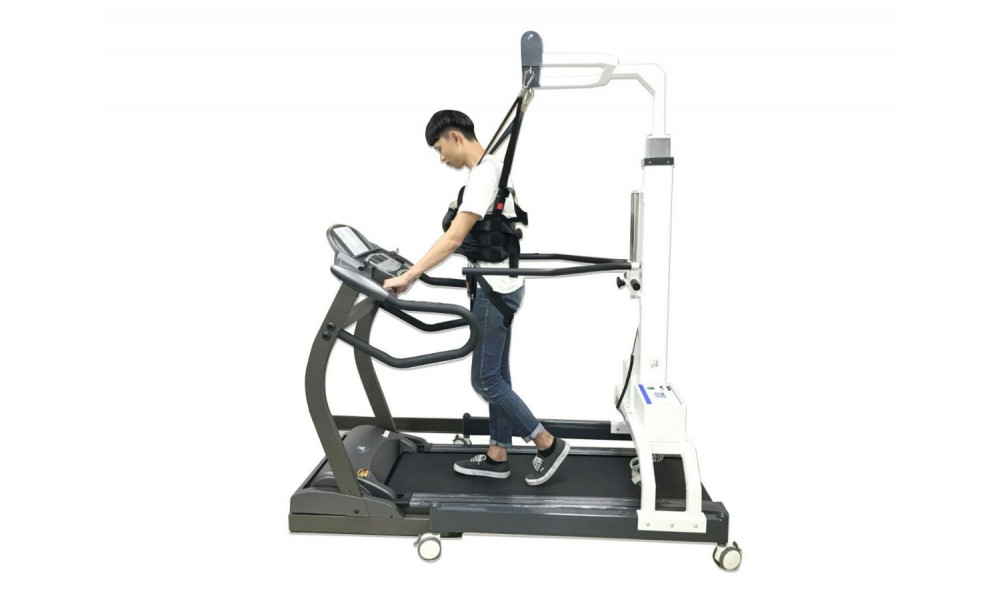 - Подвес оснащен электроприводом для разгрузки веса пациента. С его помощью на ноги и позвоночник тренирующегося можно снизить или полностью избавить от тяжести собственного веса.